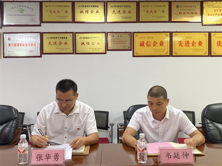 城區(qū)住建局副局長張華勇和大興集團(tuán)副總經(jīng)理、黨支部書記詹雪飛為中共廣西大興建設(shè)集團(tuán)有限公司黨支部揭牌